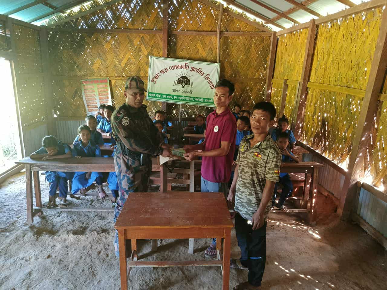 সোমবার (২০ অক্টোবর ২০২৫) রুমা ব্যাটালিয়ন (৯ বিজিবি)-এর অধিনায়ক বিএ-৭০২৫ লে. কর্নেল এ. বি. এম. শাহ্ রেজা, পিএসসি-এর নির্দেশনায় অধীনস্থ রাইক্ষ্যংপুকুরপাড়া লগ বেস ক্যাম্পের কমান্ডার বিদ্যালয়টিতে ১টি চেয়ার, ১টি টেবিল এবং ২০টি বেঞ্চ হস্তান্তর করেন।
