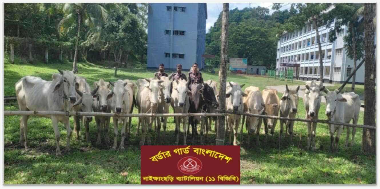 বান্দরবানের নাইক্ষ্যংছড়িতে ১১বিজিবি তাদের ধারাবাহিক অভিযানে ১৫টি বার্মিজ গরু জব্দ করেছে।