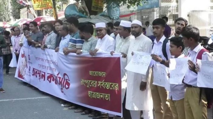রংপুর: উত্তরবঙ্গের জীবনরেখা তিস্তা নদীকে ঘিরে ঘোষিত “তিস্তা মহা-পরিকল্পনা” দ্রুত বাস্তবায়নের দাবিতে রংপুরে ছাত্র ও সাধারণ জনগণ অবস্থান কর্মসূচি পালন করেছে।