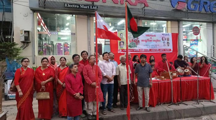 এ সময় নারী নেত্রী কল্পনা রায়,সিপিবি নগর কমিটির সাধারণ সম্পাদক অসিম সরকার লিটন,বাসদ জেলা আহবায়ক আলফাজ হোসেন যুবরাজ,উদীচী রাজশাহী জেলা সংসদের সহ-সভাপতি আফতাব হোসেন কাজল ও